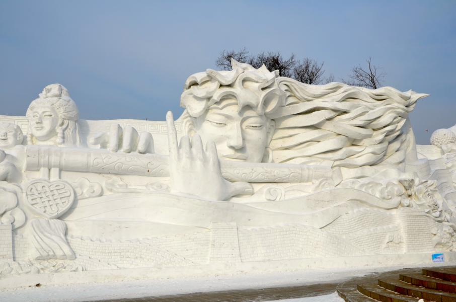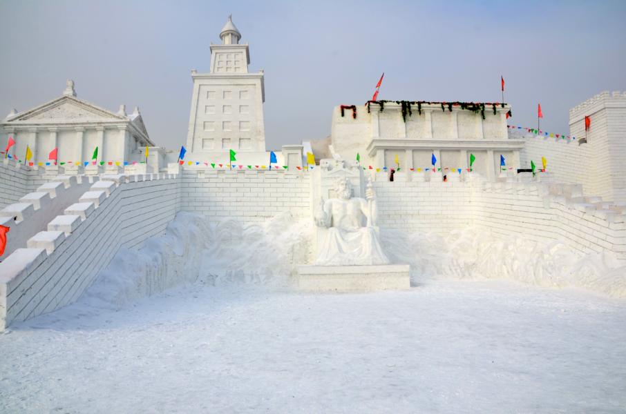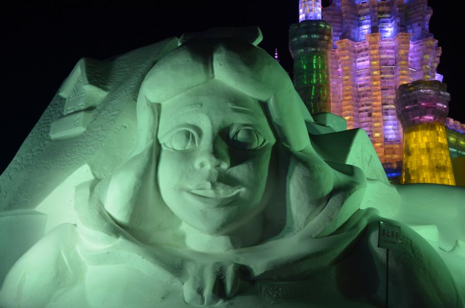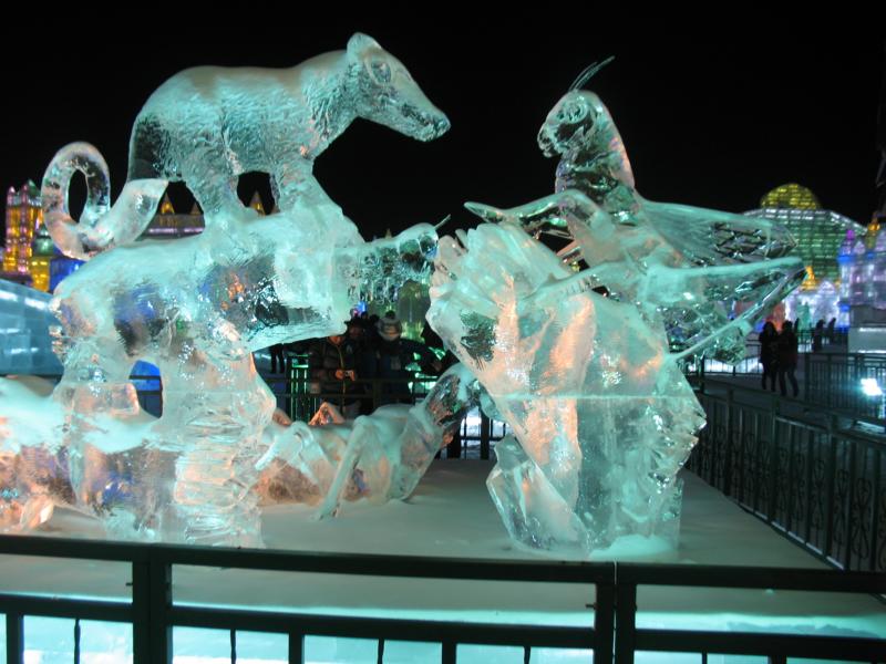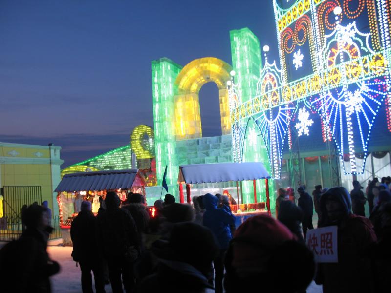 Harbin im Norden Chinas. Bei -35 Grad darf man sich schon warm anziehen. Alles ist hier aus Eis gemacht das im Winter vom Fluß herausgeschnitten wird. Es werden nicht nur Figuren sonder es wird eine richte Stadt gebaut. Ein muss, wenn man in der Winterzeit in China ist.